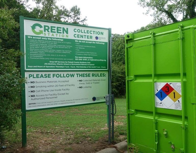 You can take these items to the Little Rock Green Station for recycling. These chemicals must be in their original packaging. Unlabeled bottles are not accepted at the Green Station.
