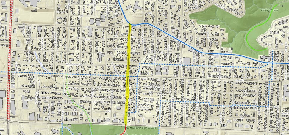 Figure 3. Bike lanes resume immediately after Woodlawn Drive.