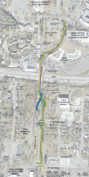 5) Jonesboro Drive: The City of Little Rock seeks to revitalize and create better bicycle and pedestrian accommodations on Monroe/Jonesboro between Zoo Dr. and 12th St (Fig. 2). The City applied for an ArDOT Transportation Alternatives Program grant in April 2017 to do some of this work but was not awarded the grant.