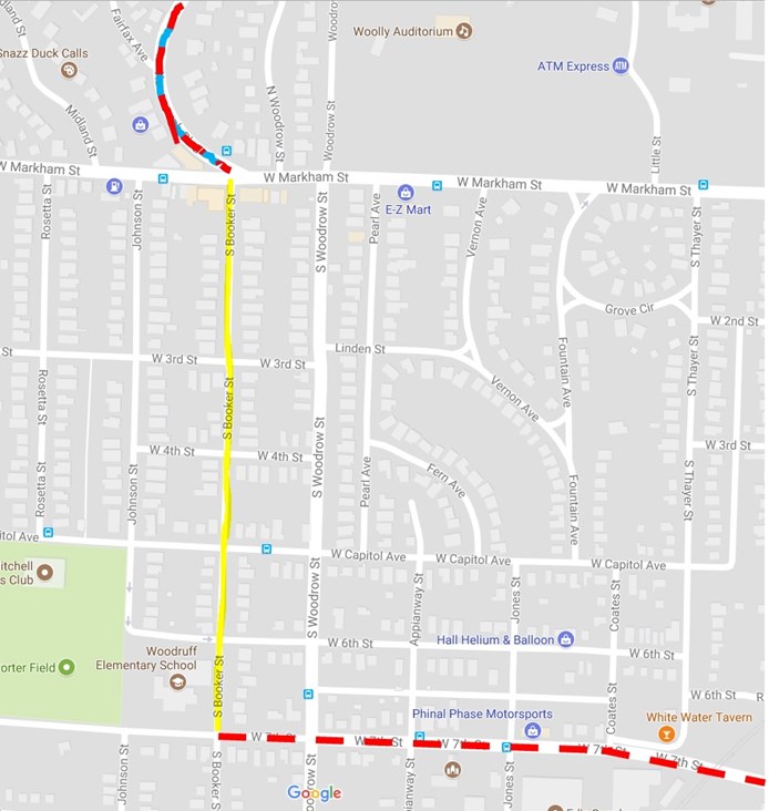 Figure 1. The nominal cost of creating sharrows on five blocks of Booker will help cyclists navigate from 7th St. to Hillcrest and the Heights.