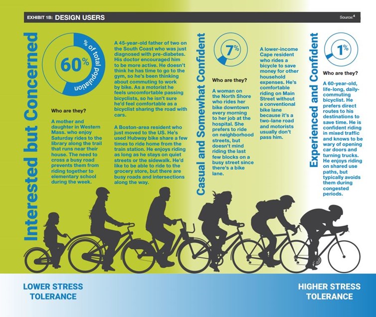 Figure 5. A small percentage of the population is willing to bike on a street with no separation from vehicular traffic, but a much larger percentage would bike if that separation existed (pg. 5).