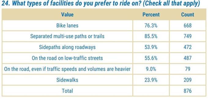 Based on this exhaustive community outreach, it is fair to say that people want a community and a transportation grid that supports walking and biking.