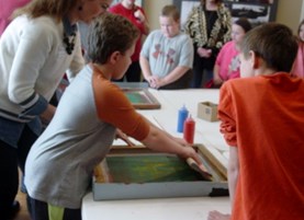 Students from Piggott Elementary make their own poster, a souvenir from the program.